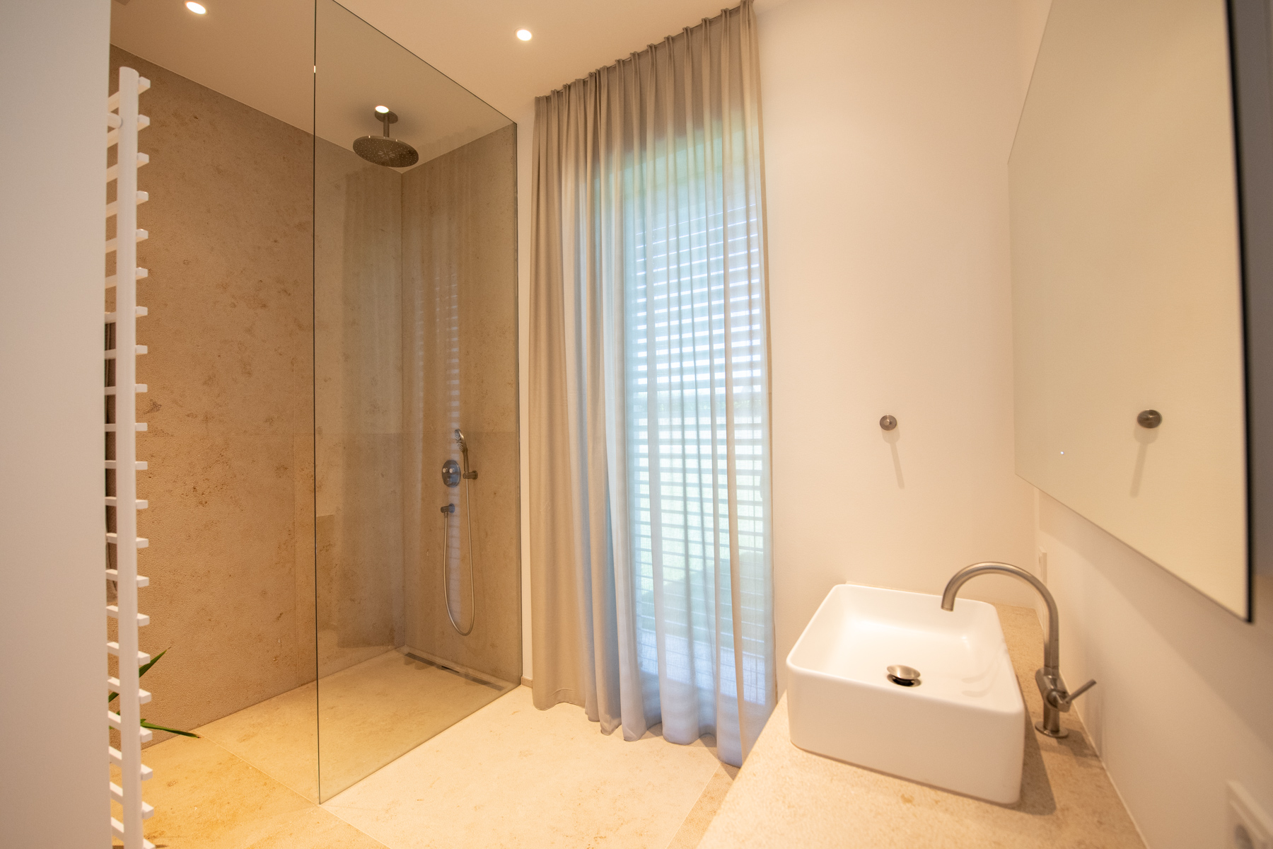 „Die große Dusche ist ein echtes Highlight – Wellness für jeden Tag. Auch das Gästebad lässt keine Wünsche offen. Alles ist sehr hochwertig, die Materialien sind top. Qualität, die man sieht und spürt.”