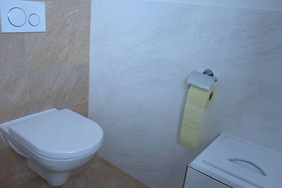 • WC im Bad wandhängend, spülrandlos