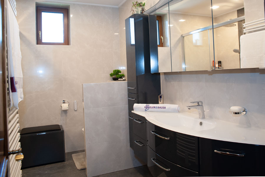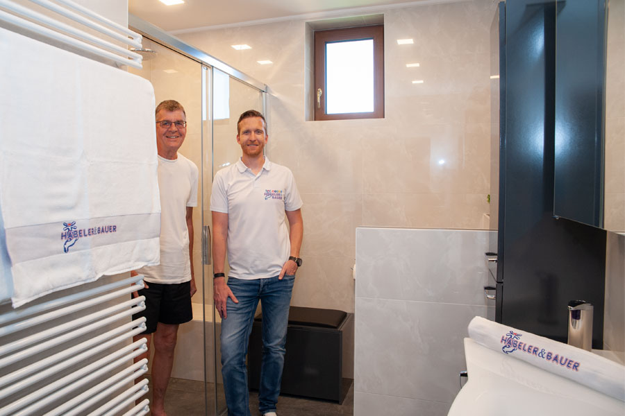 „Bei der Sanierung unseres Bades war es uns wichtig, vorausschauend zu planen und an die Zukunft zu denken. Statt der alten Badewanne haben wir jetzt eine große Dusche mit bodenebenen Einstieg, beheizter Sitzbank und viel mehr Platz als früher.”