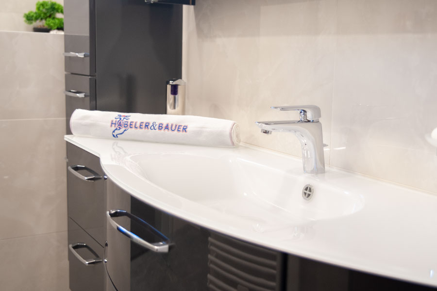 Bei dieser Badsanierung wurde ein bestehendes Badezimmer in einen modernen und komfortablen Wohlfühlbereich verwandelt. Der elegante Möbel Waschtisch aus Glas mit Aufputz Einhebelmischer bildet einen stilvollen Blickfang und fügt sich harmonisch in das hochwertige Gesamtkonzept ein.