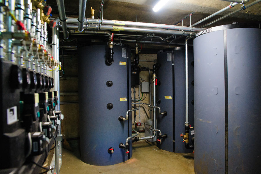 Bei dieser Generalsanierung wurde das Gebäude umfassend modernisiert, inklusive des Austauschs der Heizungsanlage. Installiert wurde eine Pelletsheizung von Hargassner. Die Pelletslagerung erfolgt platzsparend in einem Gewebetank, die automatische Beschickung des Kessels wird über ein Saugsystem gesteuert, und die Regelung erfolgt präzise über eine Lambdasonde.