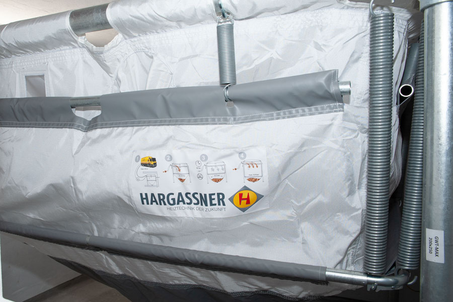 Die Pellets Lagerung erfolgt platzsparend in einem Gewebetank, die automatische Beschickung des Kessels wird über ein Saugsystem sichergestellt. Zur optimalen Betriebsweise wurde ein Pufferspeicher integriert. Die Wärmeabgabe erfolgt sowohl über bestehende Heizkörper als auch über eine Fußbodenheizung.